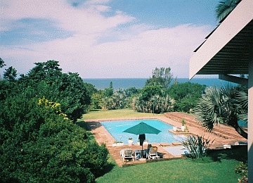 Hier wohnen Sie: Zimmer groß wie Suiten, Pools wie deutsche Freibäder, selbstverständlich mit Blick zum Meer und english tee time. Southbroom ist mit Abstand der schönste Ort zwischen Durban und der südlichen Grenze zur Wild Coast. Bis Margate ist auch die Küste noch nicht verbaut, die Strände, Flußmündungen Palmenplantagen, alles das wirkt noch einigermaßen vom großen Tourismus verschont; nur den Hai-Netzen würde ich nicht unbedingt überall trauen. Allemal aber ist das Hinterland echtes, faszinierendes Südafrika.