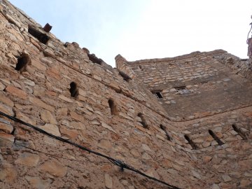 Unser nächstes Ziel, das Fort (ebenfalls aus Lehm gebaut) hat ziemlich große Ausmaße und beherbergt in seinem Inneren viele kleine Gebäude mit verwinkelten Zimmern, Gängen und Treppen; im Schatten und dort, wo die Luft durchstreift, ist es angenehm kühl im Gegensatz zu den sonnenbeschienenen Außenanlagen. Vom Fort geht es weiter zum Schloss Jabrin. Auch hier durchstreifen wir die verwinkelten Säle, Zimmerchen, Treppen, Küchen etc. Die Ausstattung lässt uns ein bisschen das ehemalige Leben in der Bibliothek, den Festsälen, den Frauengemächern und in der Moschee erahnen.