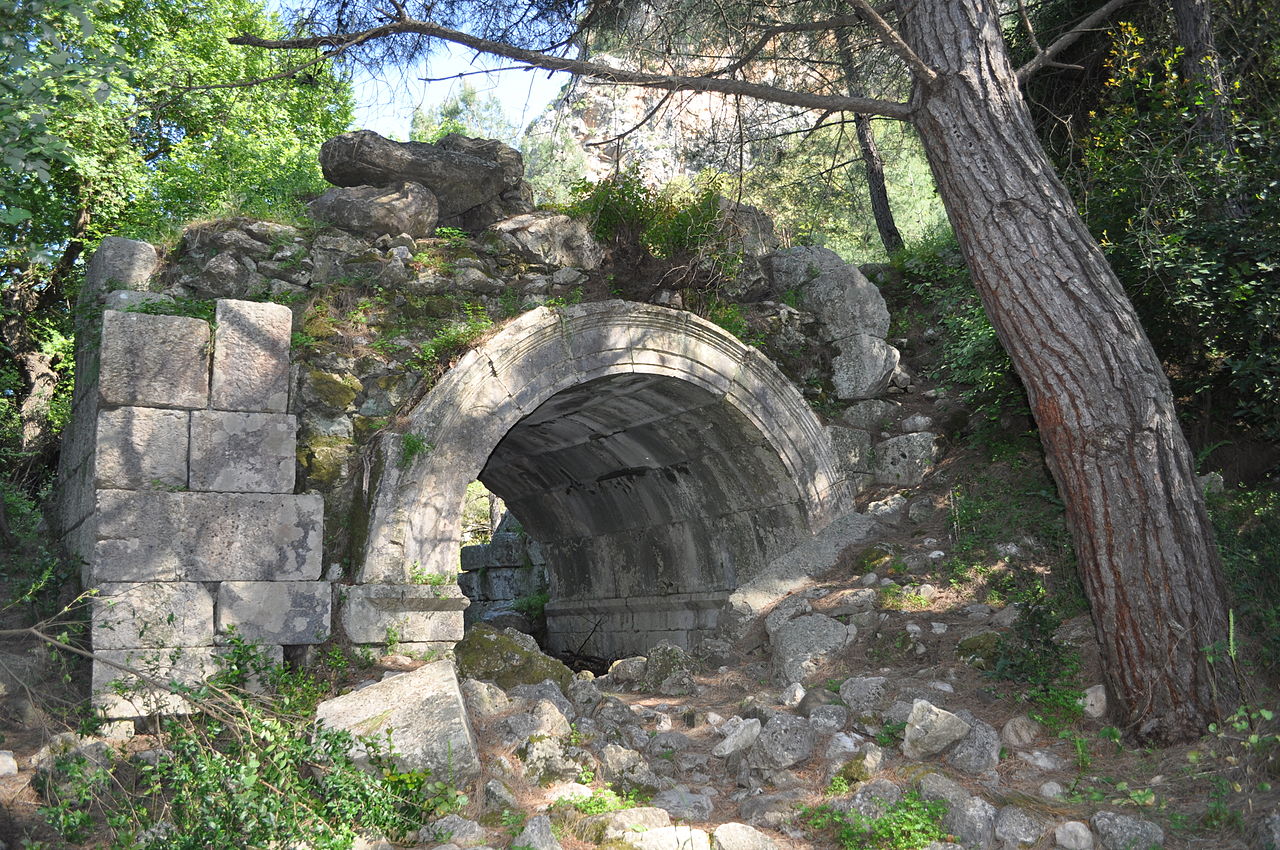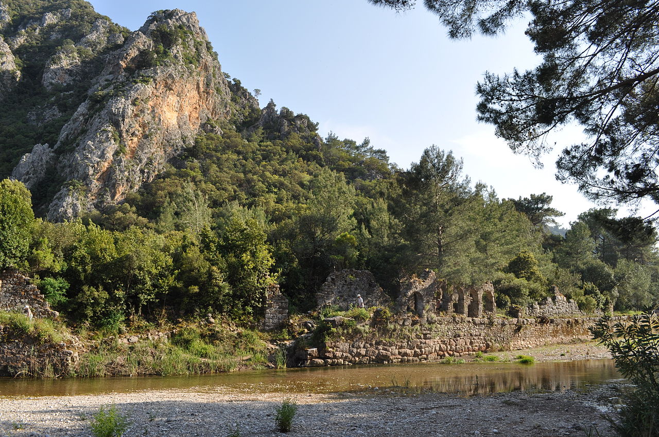 Olympos wurde als Bergstadt auf dem heute Musa Dağı genannten Berg gegründet, südlich seines Hafens Korykos, der ab etwa 130 n. Chr. nach Kaiser Hadrian Hadrianopolis benannt wurde und ein florierender römischer Hafen war. Er brachte Wohlstand nach Olympos, wovon einige Ausgrabungen zeugen, die aber eher heute in schlechtem Zustand sich befinden.