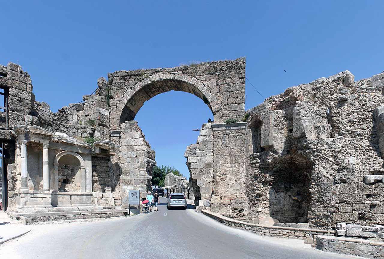 Nehmen Sie sich einen halben Tag Zeit nehmen, den Besuch des Side-Museum in der Agora-Therme nicht eingeschlossen. Was zuerst auffällt, sind die Reste des einst 30 km langen Aquädukts, der die Stadt mit dem Wasser aus Melas, dem heutigen Manavgat, versorgte. Das Haupttor stammt ursprünglich aus dem 3.Jh.v.Chr. und wurde im 2.Jh.n.Chr. umfangreich erweitert und verziert.