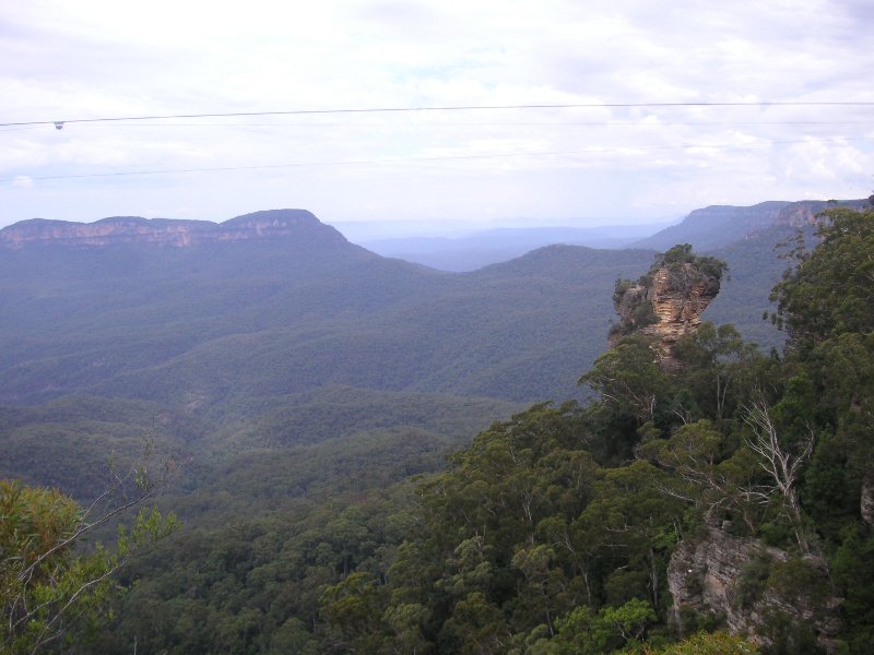 das macht sie blau-schimmernd. Genau gesagt, ein bestimmtes ätherisches Öl, welches die endlosen, artenreichen Eukalyptus-Wälder unaufhörlich verströmen. Berühmt sind die Three Sisters am sogenannten Echo Point, wo man auch seinen Adrenalinstoß sich auf dem Scenic Skyway, einer Seilbahn, die von einem zu einem gegenüberliegenden Hochplateau führt, abholen kann.