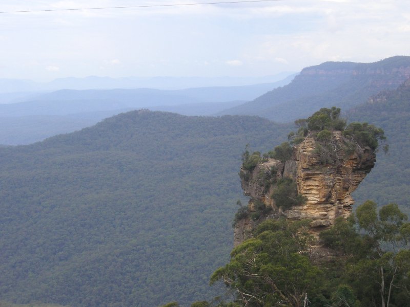 Da ist es ratsam, einen der vielen Wanderwege zu benutzten, die zwar auch nicht durch Ruhe und Einsamkeit in der Nähe der Sisters imponieren, aber doch lohnenswert sind, da die meisten Touris doch eher selten mehr als hundert Meter vom Bus sich entfernen. Wer aber mit dem Auto da ist, hat Glück. Denn der fährt nach dem kurzen Blick auf die Sisters einfach rein in die Blue Mountains und das lohnt sich auf jeden Fall.
