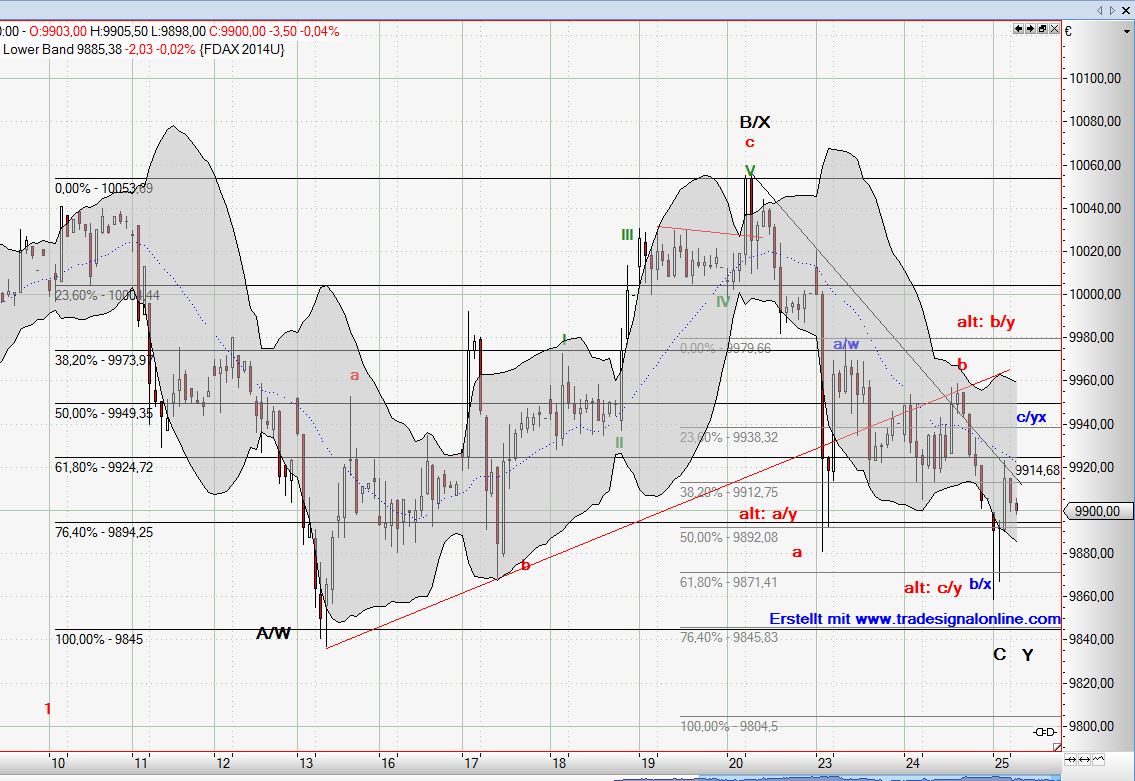 Rückblick: Unsere abwartende Haltung hat sich weiterhin als richtig erwiesen. Theoretisch könnte der bisherige Korrekturabschnitt zwar als in EW-Sprache W-X-Y fertig gezählt werden, jedoch hinterlassen die seit dem Tiefpunkt vom 26.06. bei 9756,5 FDax-Punkten sich anschliessenden Strukturen keinen überzeugenden Kaufdruck erkennen. Ausblick: Leider müssen wir weiterhin von seitwärts bis abwärts gerichteten Kursen ausgehen, die in ... Weiterlesen...