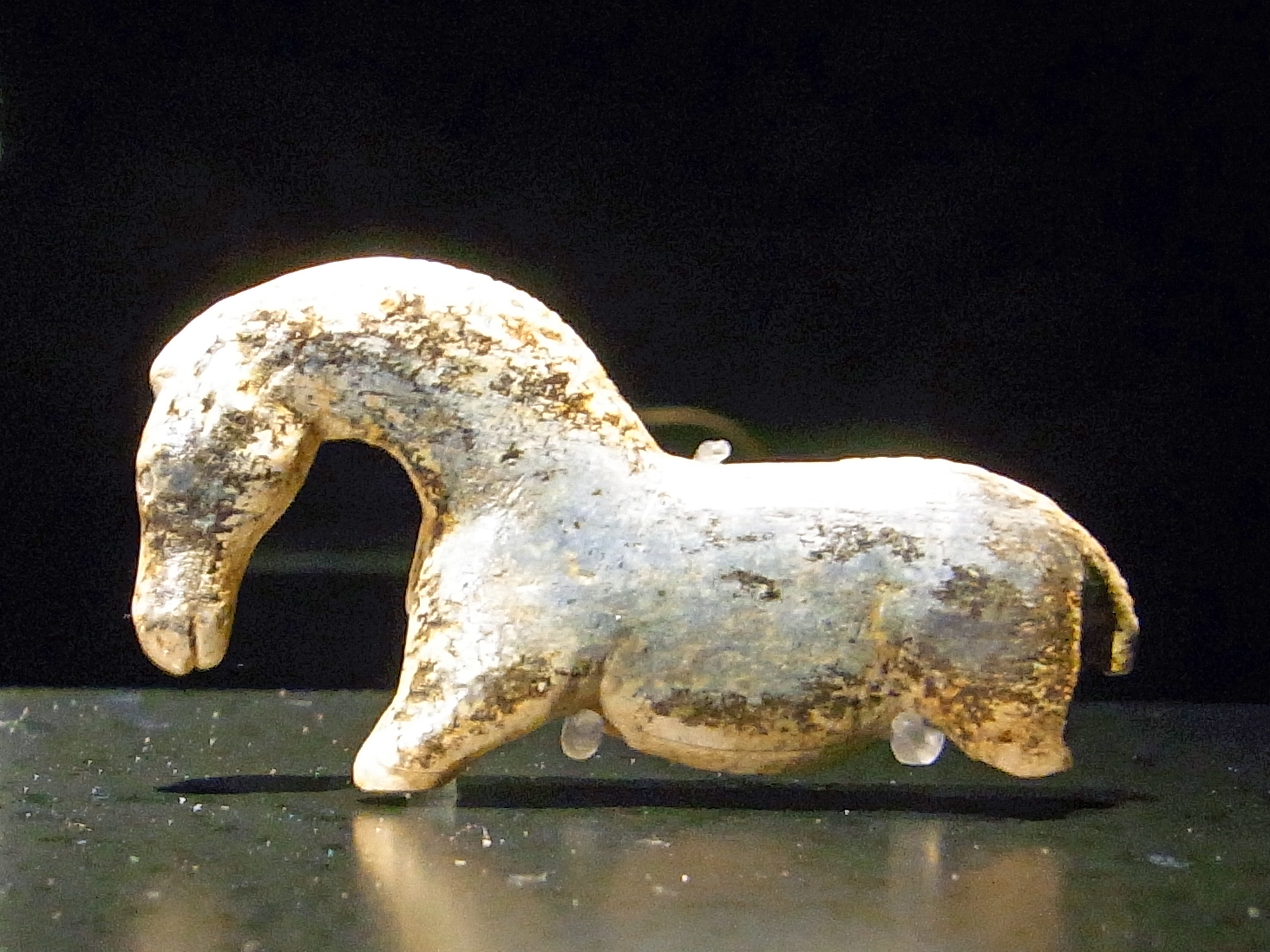 Thilo Parg / Wikimedia Commons – Lizenz: CC BY-SA 3.0 Eines der ältesten Kunstwerke der Menschheit, Wildpferd aus der Vogelherdhöhle (rund 40 000 Jahre, Aurignacien), UNESCO-Welterbe „Höhlen und Eiszeitkunst der Schwäbischen Alb“, MUT „Alte Kulturen“ auf Schloss Hohentübingen, Sammlung der Älteren Urgeschichte