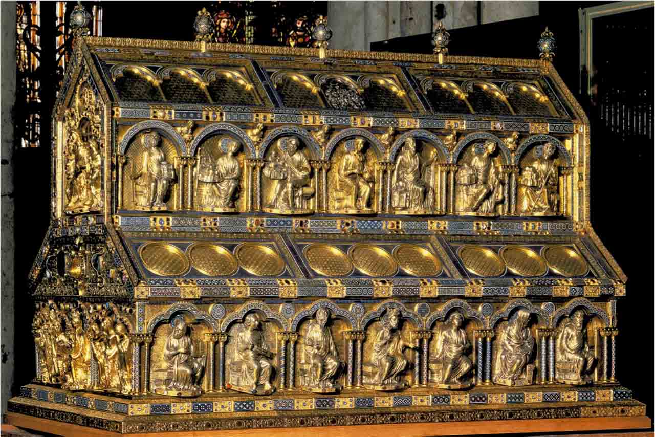 Hl. Drei Köge Schrein, KölnNoch heute heißt Köln im Volksmund „et hillije Kölle“ und verweist stolz und geschäftstüchtig auf den Domschatz, zu dem die Reliquien der Heiligen Drei Könige zählen, die man mit Hilfe vom grausamen Barbarossa aus dem Mailänder Dom gestohlen hat. Will man Köln verstehen, muss man sich also dem Widerspruch aussetzen. Dem Widerspruch zwischen heidnisch und christlich, der aber in Köln eine jahrtausende alte Tradition einer gelebten Synthese in Anspruch nehmen darf.