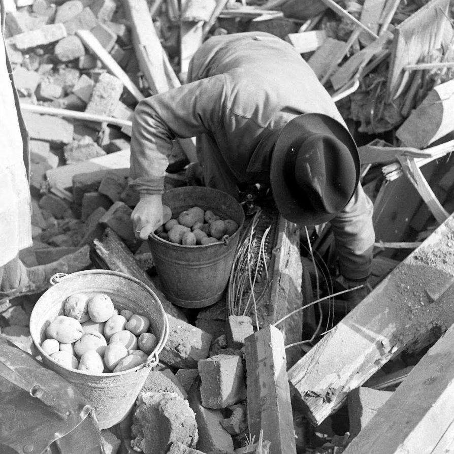 Monatelang schufften die Menschen Schutt aus den Städten, machen die Straßen wieder frei. Mit einfachsten Mitteln werden Ziegel aufbereitet und erneut zum Hausbau verwendet. Holprige Schienen und quietschende Loren gehören zum Alltagsbild der Kölner Veedel, in denen nun die „Trümmerfrauen“ das Regime des Wiederaufbaus übernehmen und so auch einen kargen Lohn und vor allem die Karten für Lebensmittelrationen sichern.