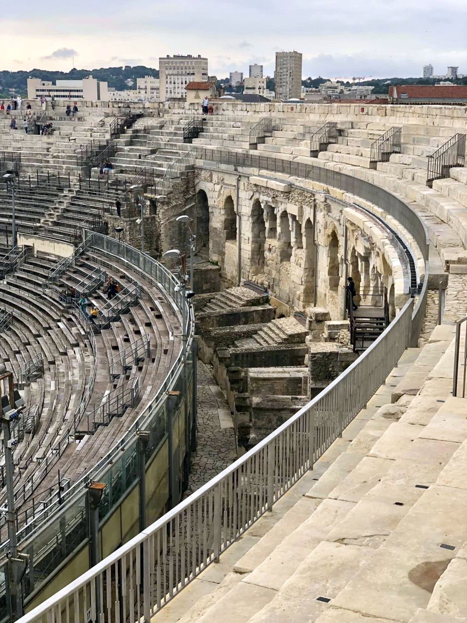 Frankreich - NimesFrankreich - NimesNemausus (Nimes) war einst ihr Name, bis dann die Römer kamen und 121 v.Chr. Stadt und Gebiet eroberten und sie 27 v. Chr. Kaiser Augustus zur Colonia erhob.Man sieht heute noch den Tour Magne („Großer Turm“), der schon bei den Römern Teil einer sieben Kilometer langen Stadtbefestigung war. Die verkehrsgünstig an der Via Domitia gelegene Stadt verfügte über eine bedeutende Münzstätte und hatte damals schon 25.000 Einwohner, was eine große Population zu damaliger Zeit war. Von der einstigen Stellung zeugen erhaltene Baudenkmäler wie das Amphitheater, das Castellum, der Dianatempel, das Aquädukt Pont du Gard nordöstlich der Stadt, die Maison Carrée sowie das Augustustor.