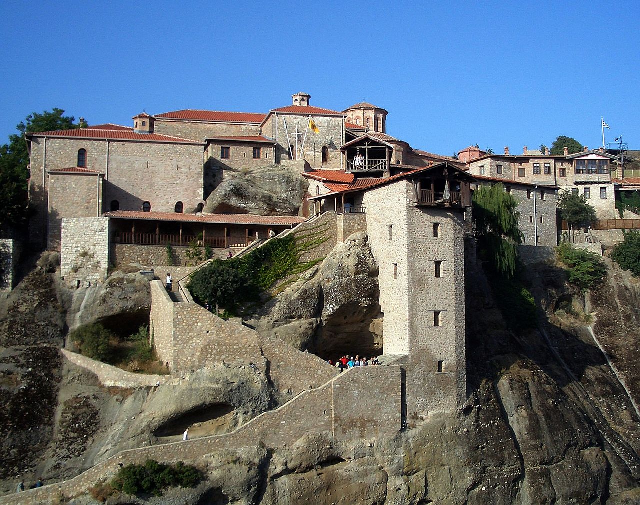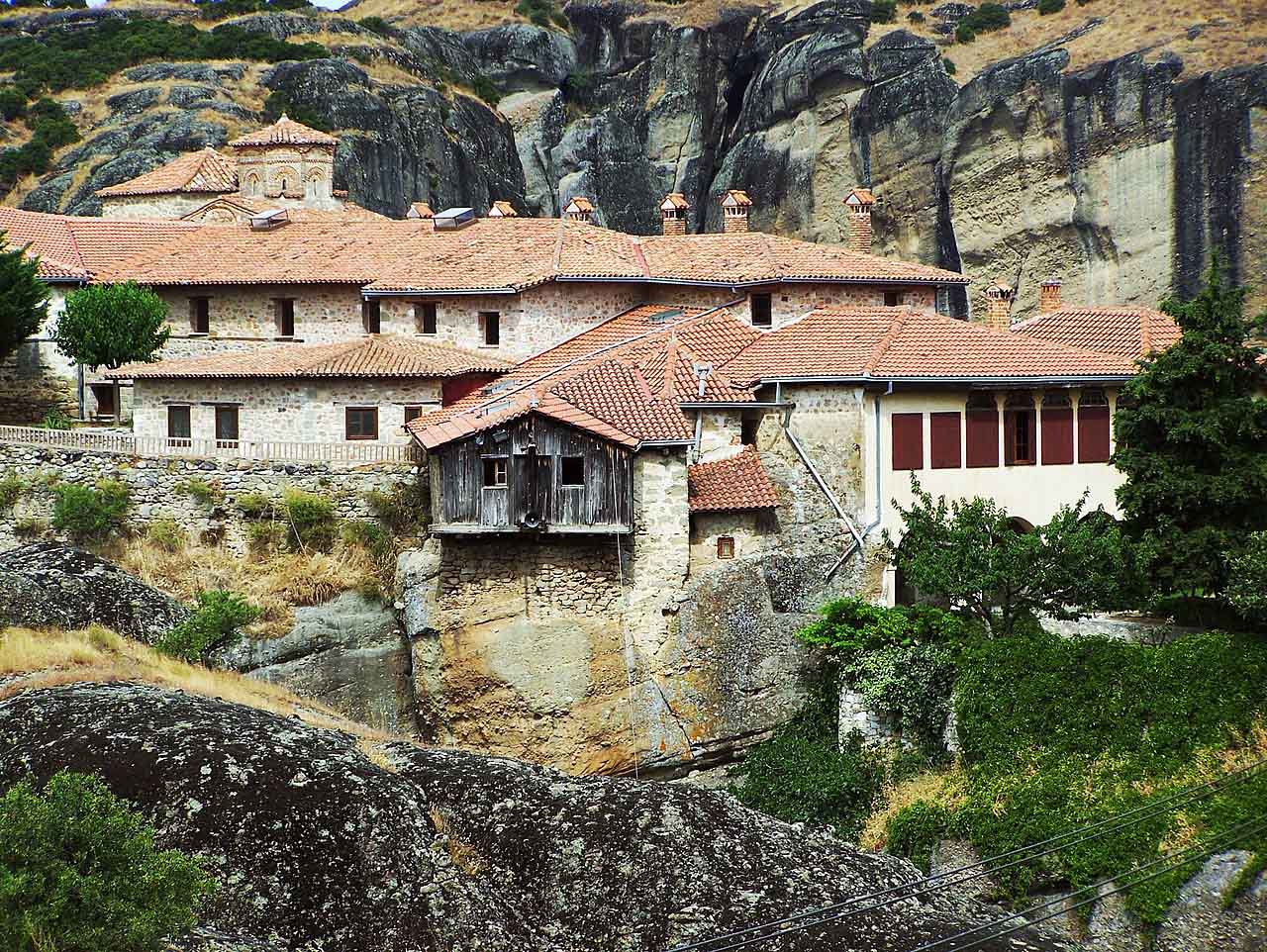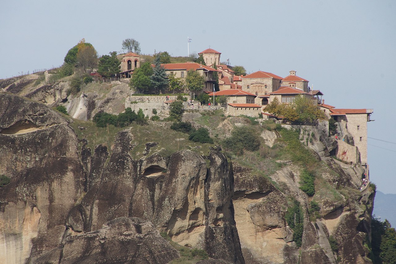 Metamórphosis, auch bekannt als Megálo Metéoro. Der Gebäudekomplex ist mit etwa 60.000 m² das größte der Metéora-Klöster. Es liegt 613 m über dem Meeresspiegel und ist noch immer von Mönchen bewohnt. Seinen Namen Metéoro (der Schwebende) erhielt der Fels vom Gründer des Klosters, dem Mönch Athanasios.