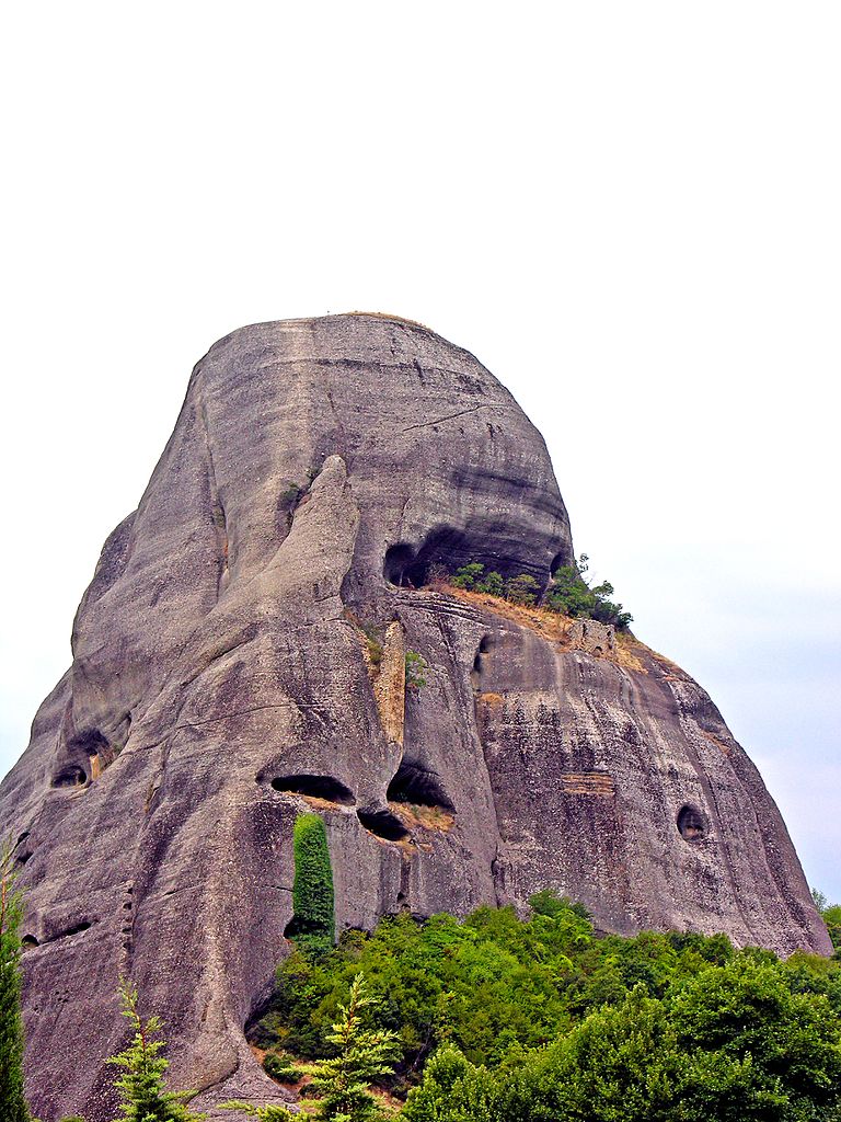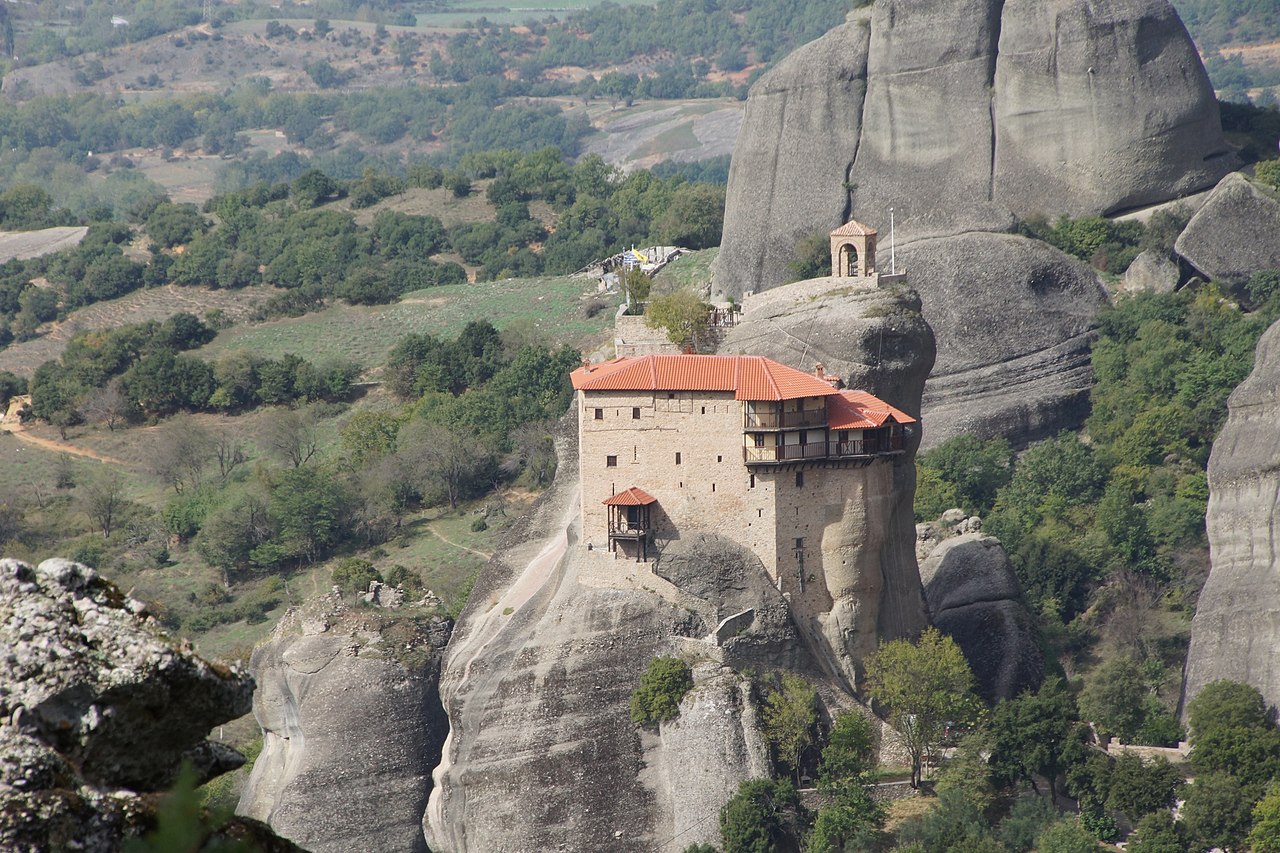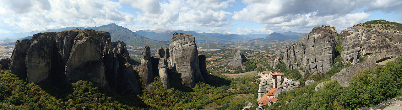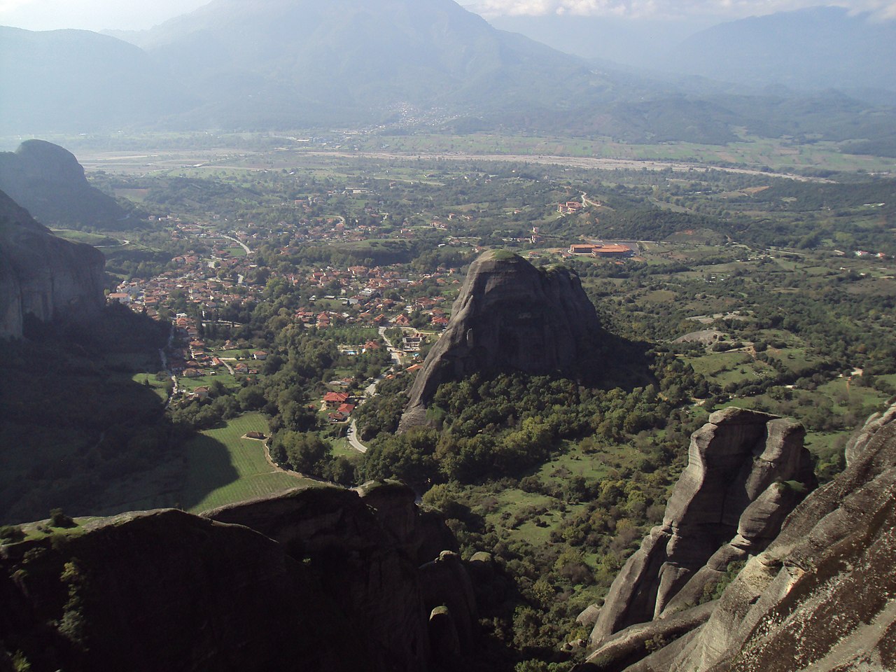 Metamórphosis, auch bekannt als Megálo Metéoro. Der Gebäudekomplex ist mit etwa 60.000 m² das größte der Metéora-Klöster. Es liegt 613 m über dem Meeresspiegel und ist noch immer von Mönchen bewohnt. Seinen Namen Metéoro (der Schwebende) erhielt der Fels vom Gründer des Klosters, dem Mönch Athanasios.