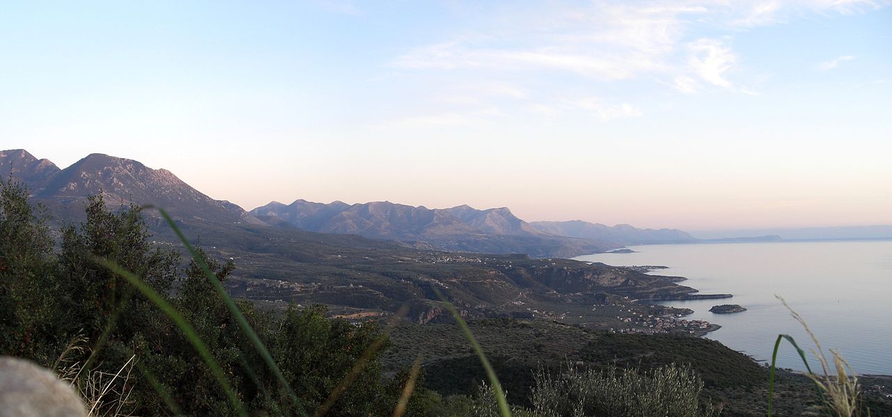 Bis auf 2.400 Meter hinauf ragen die Gipfel des Taygetos-Gebirges, welches sich schützend vor fremde Einflüsse und Kulturen gelegt hat und wo Piraten und Menschen auf der Flucht vor Verfolgungen beste Bedingungen fanden. Mani hat so in seiner Geschichte einen einzigartigen Menschenschlag und eine eigene Kulturform hervorgebracht, abgeschottet durch die besondere Topografie der Halbinsel. Aber der Landstrich war schon seit dem Neolithikum nachweislich bevölkert, Siedlungsspuren wurden in mehreren Höhlen gefunden, z. B. in den Apidima-Höhlen oder der Alepotrypa-Höhle.