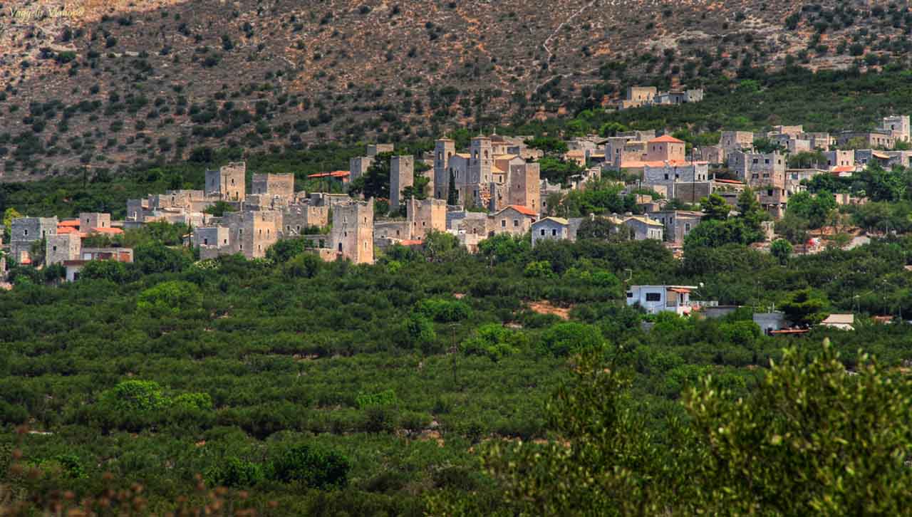 Dieser Streit hat seine bis heute erhaltenen steinernen Zeugen in den teilweise sehr hohen maniotischen Wehr- und Wohntürmen, dem kriegerischen Erbe des Landstriches von den Spartanern bis heute – und die an die Architektur der toskanischen Wehrtürme von San Gimignano erinnern.