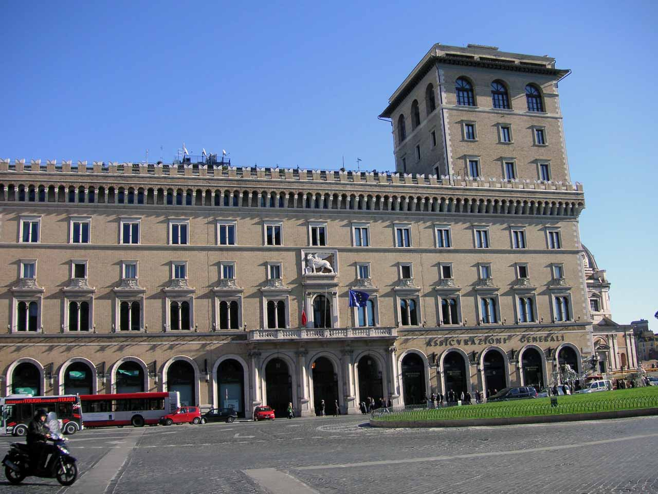 Die Piazza Venezia liegt am Fuße des Kapitolshügels, gleich neben dem Forum Romanum, benannt nach dem Palazzo Venezia, in den sechziger und siebziger Jahren berüchtigte Hauptverkehrsader von Rom, auf der sich der Ruhm der Stadt als Dauerzustand mobiler Anarchie begründete.