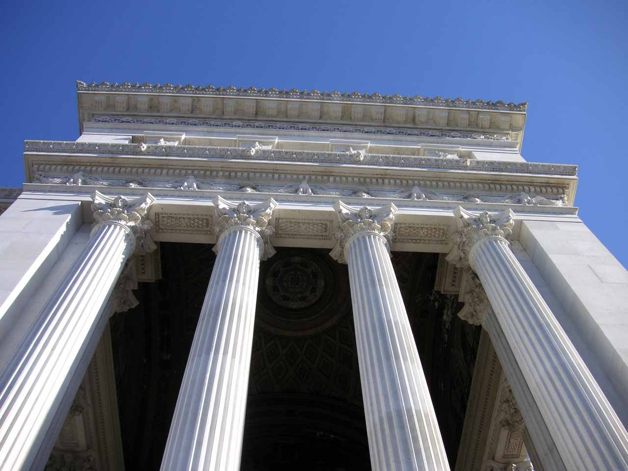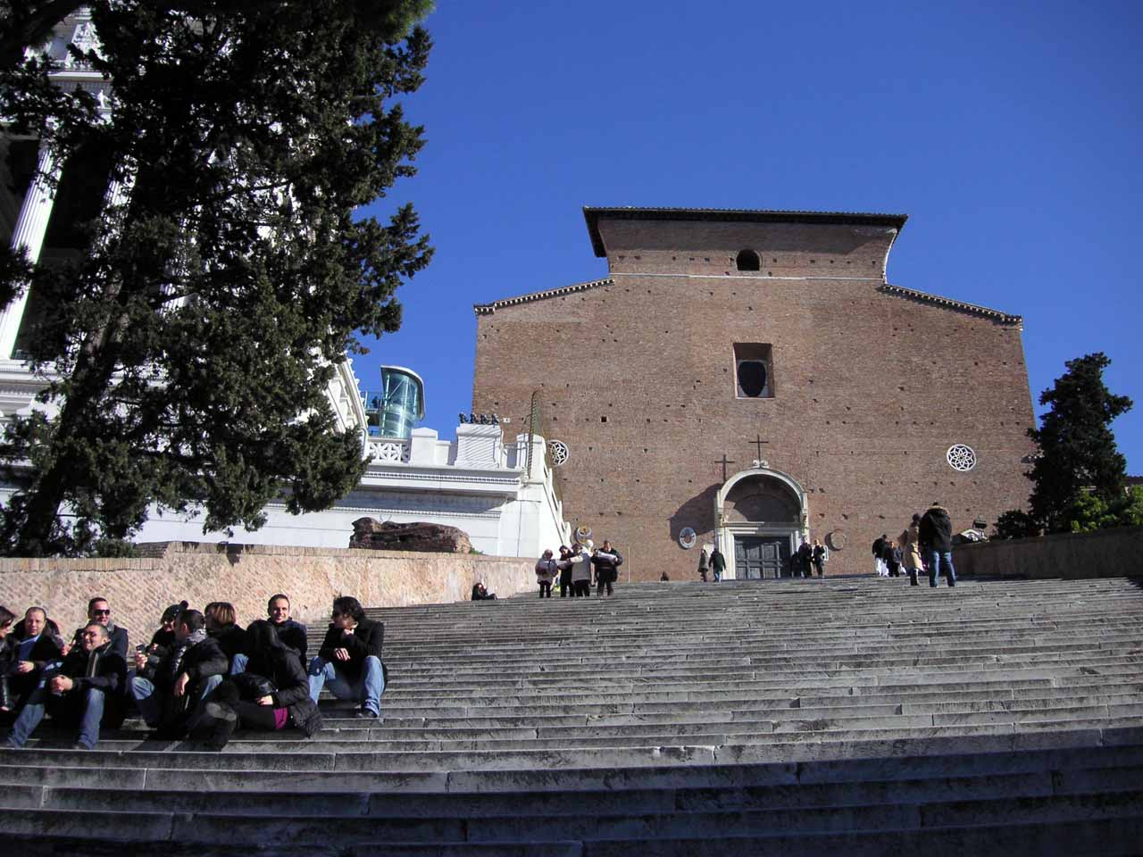 Die Kirche Santa Maria in Aracoeli liegt auf dem Gipfel des Kapitols, verdeckt, fast versteckt hinter dem Nataionaldenkmal, das man ihr quasi vor die Nase gesetzt hat.