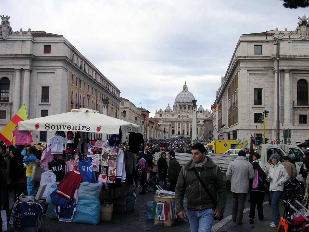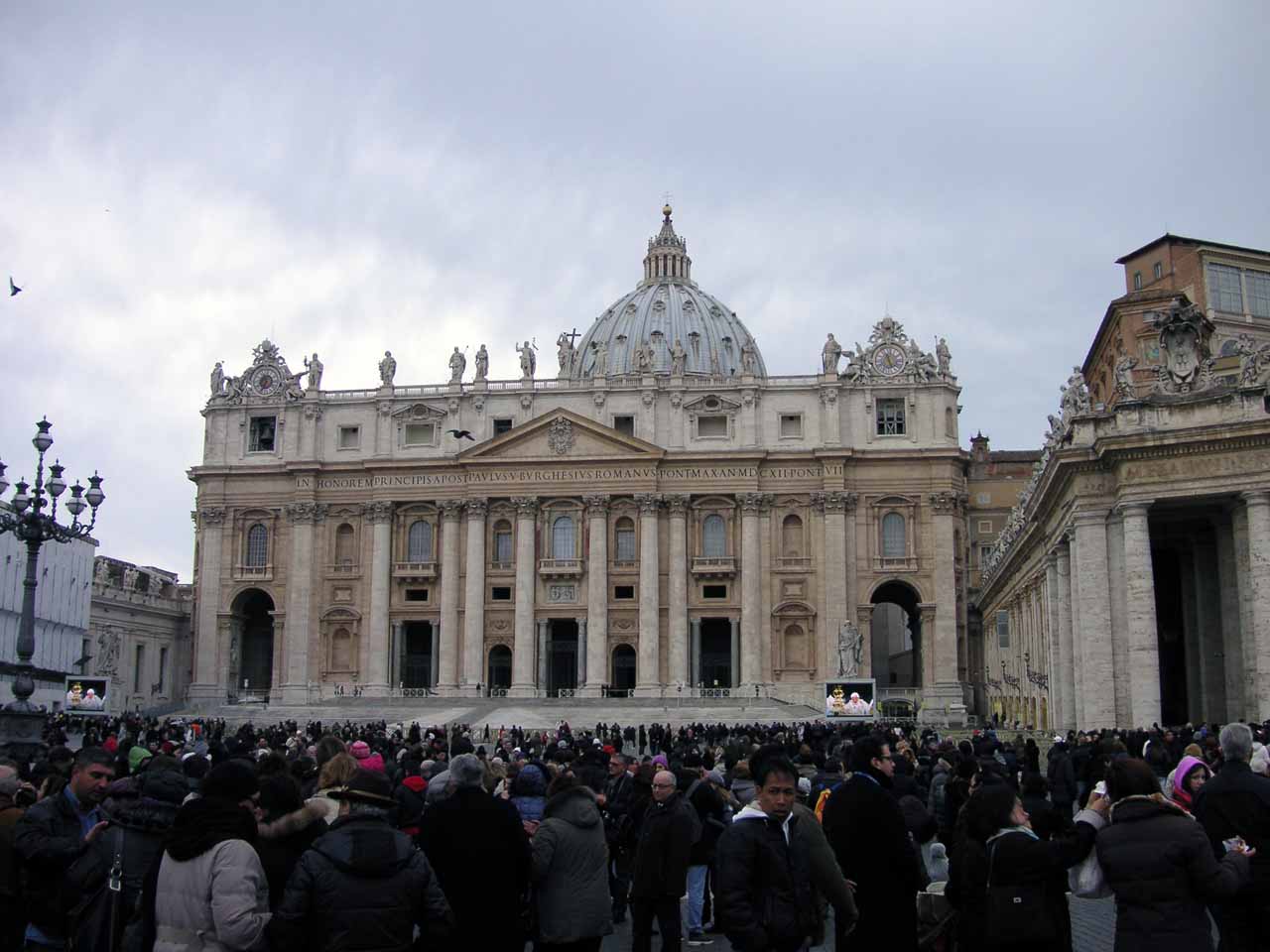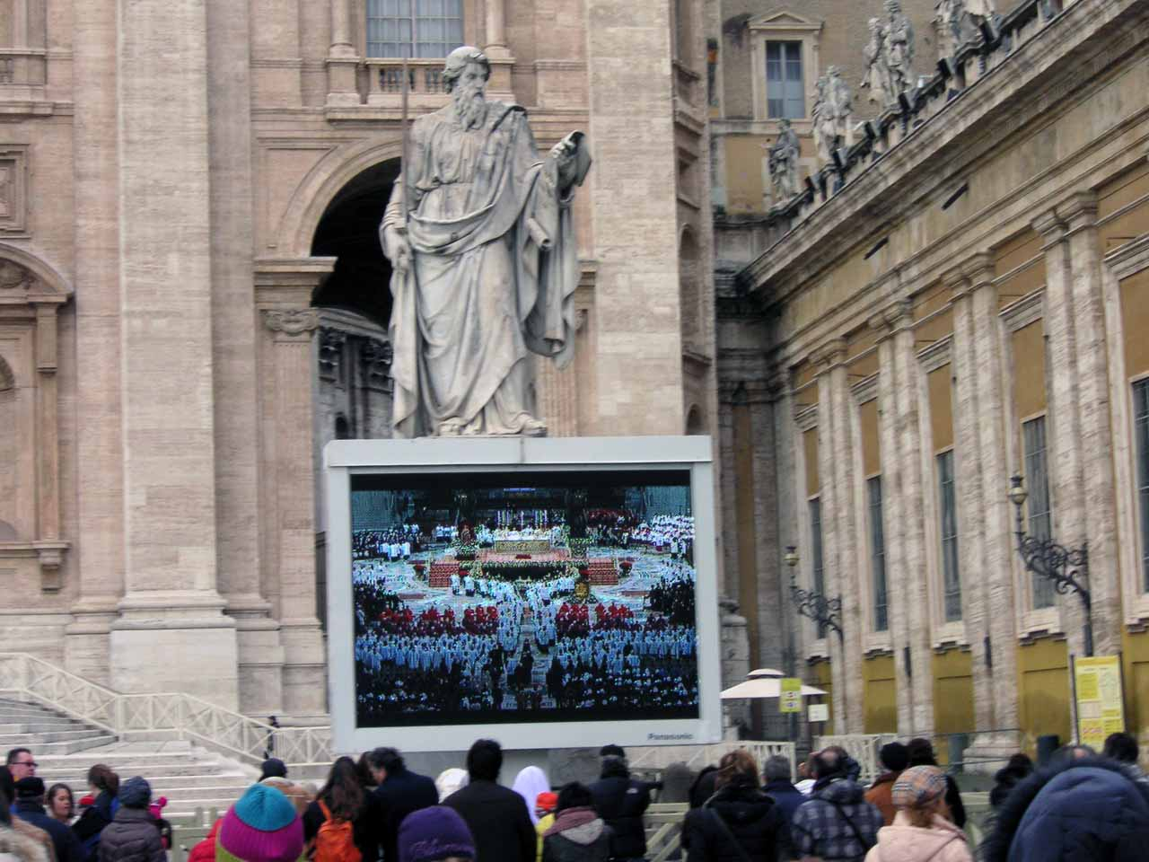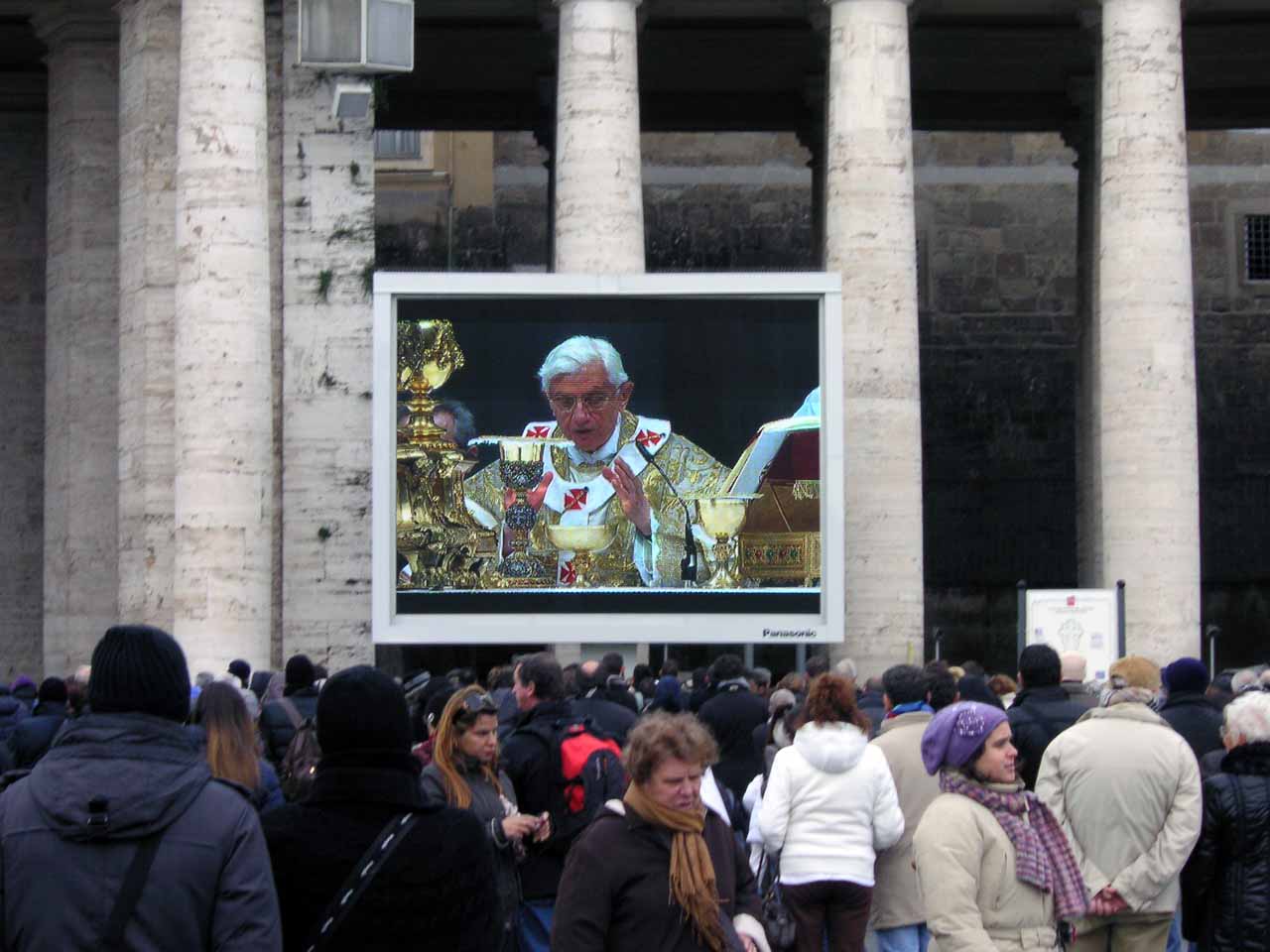 Jeden Mittwoch hält der Papst vormittags eine Generalaudienz auf dem Petersplatz. In den Wintermonaten und bei schlechtem Wetter findet sie in der Vatikanischen Audienzhalle statt. Auf dem Petersplatz befinden sich insgesamt vier große Videoleinwände, auf denen die Menschen bei Generalaudienzen und anderen Veranstaltungen die Ereignisse mitverfolgen können (Wikipedia).