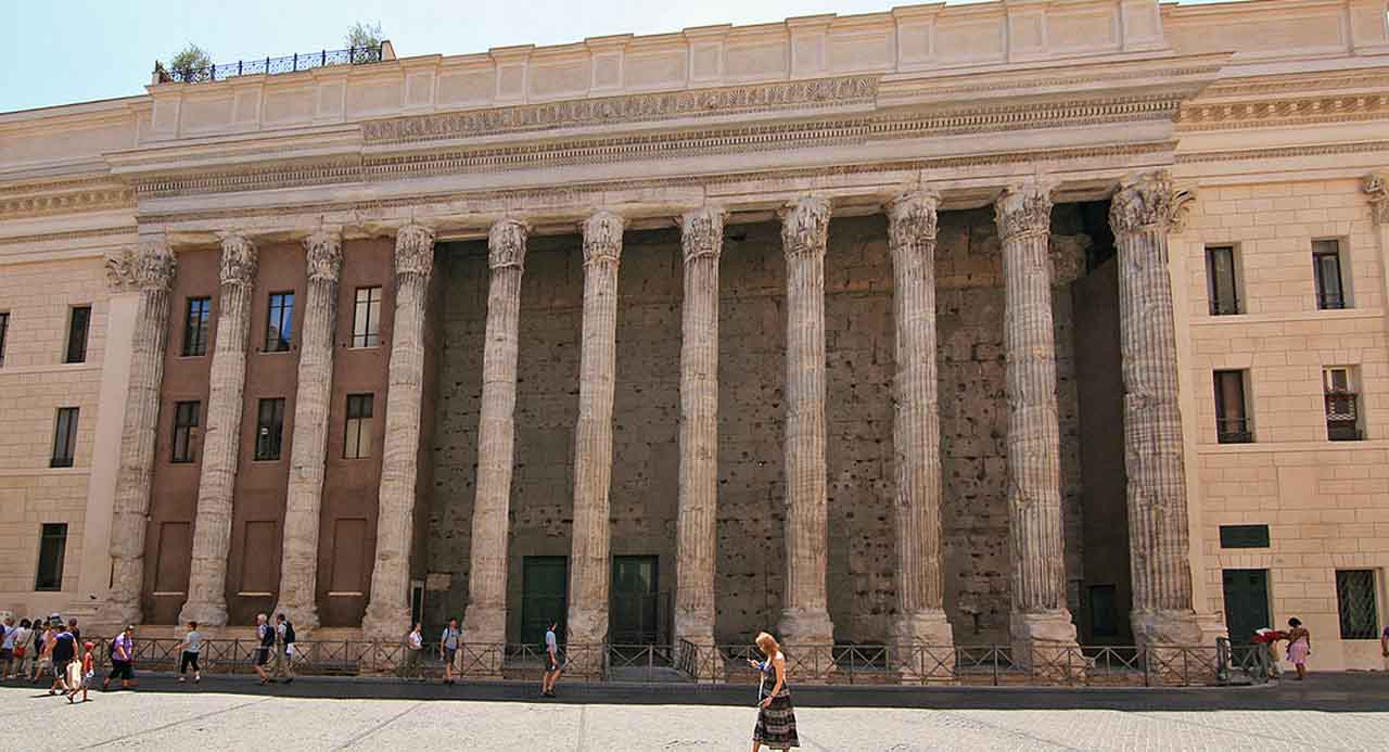 Auch was das Hadrianeum anbetrifft, zeigt hier römische Geschichte ihre possenhaften Seiten. Die mit fast 1,50 Metern Durchmesser beeindruckenden korinthischen Säulen – ursprünglich 13 auf der Längs-, 8 auf der schmalen Seite – zieren heute die italienische Börse nebst Handelskammer, nachdem sie eine Zeitlang das römische Zollhaus schmückten.