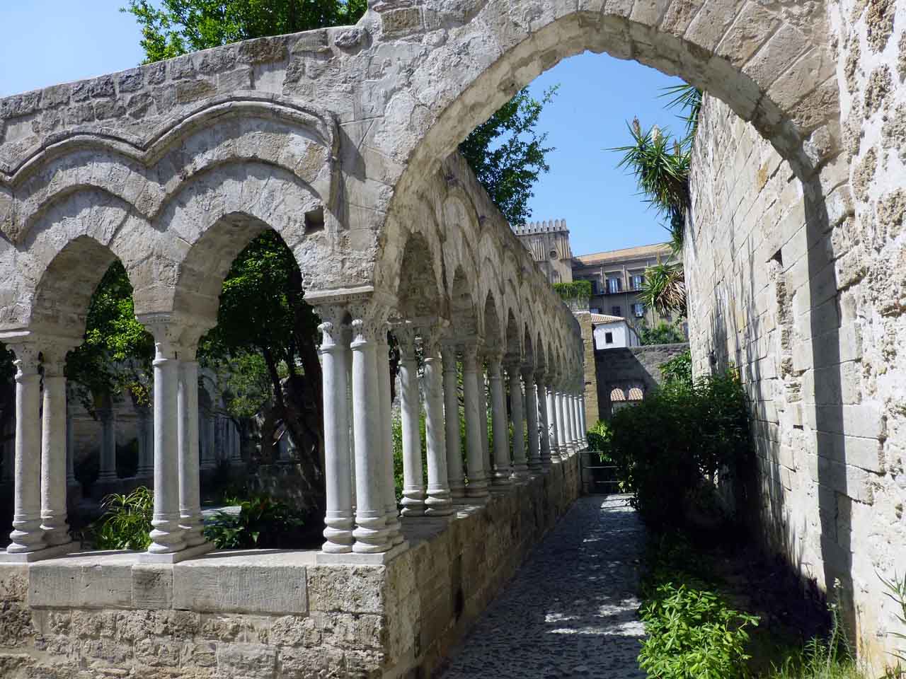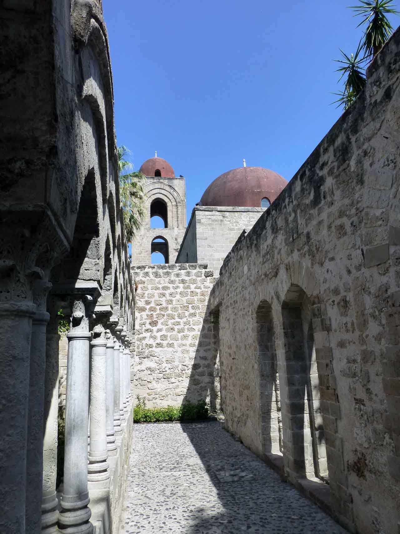 Die Chiesa S.Giovanni Degli Eremiti ist ein normannisches Kirchengebäude, dessen Architektur aus mehreren Teil aus unterschiedlichen Epochen besteht. Sie wird gerne von den beiden sehr freundlichen Halsabschneidern vor dem Eingang im Mix mit der südlich des Komplexes stehenden barocken Kirche San Giorgio in Kemonia vermarktet.