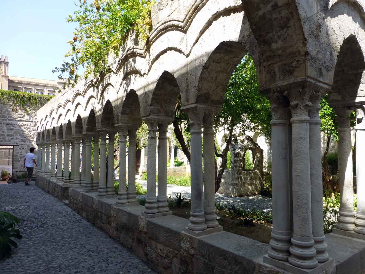 Beeindruckend die massiven Marmorsäulen mit korinthischen Kapitellen, einige zeigen arabische Sklaven, die die Last auf ihren Schultern tragen und die nach der normannischen Eroberung als Demonstration ihres Sieges angebracht worden waren.