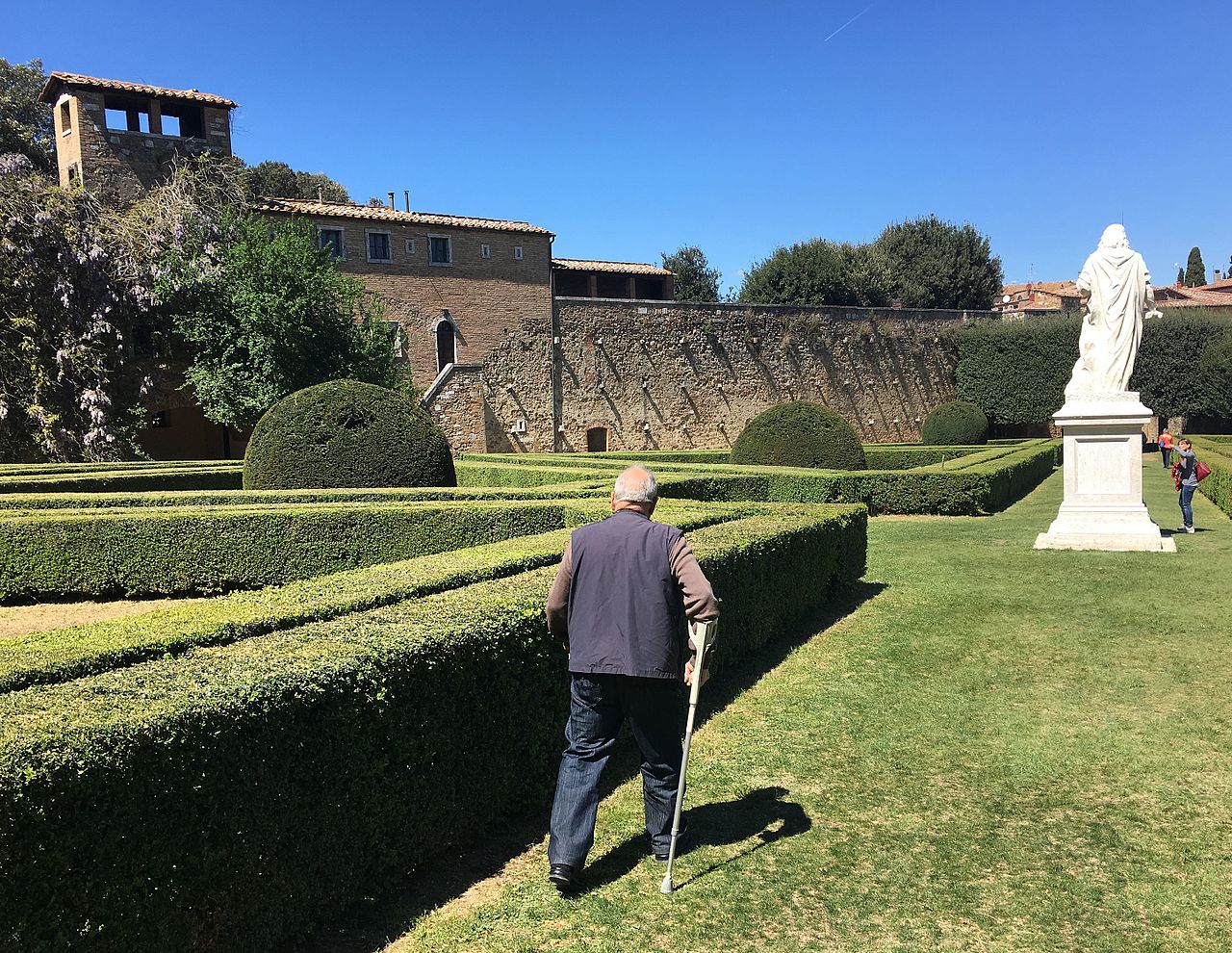 Es war dann Mittag und noch sehr viel Zeit für eine der wichtigsten und größten Sammlung der Welt, die orientalische Altertümer (Altes Ägypten und Assyrien), klassische Antike (griechisch-römische Kunst), etruskisch-italienische Altertümer (heutiges Italien vor der Römerzeit), frühchristliche und mittelalterliche Kunst (3.–14. Jahrhundert), Kunst von der Renaissance (15. Jahrhundert) bis ins 19. Jahrhundert, zeitgenössische Kunst und eine völkerkundliche Sammlung umfasste.Man trank dann in Ruhe einen Kaffee, ein Glas Wein und aß ein italienisches Brötchen mit luftgetrocknetem Schinken und war abends zum Essen wieder zurück in San Quirico d’Orcia beim Brunello.