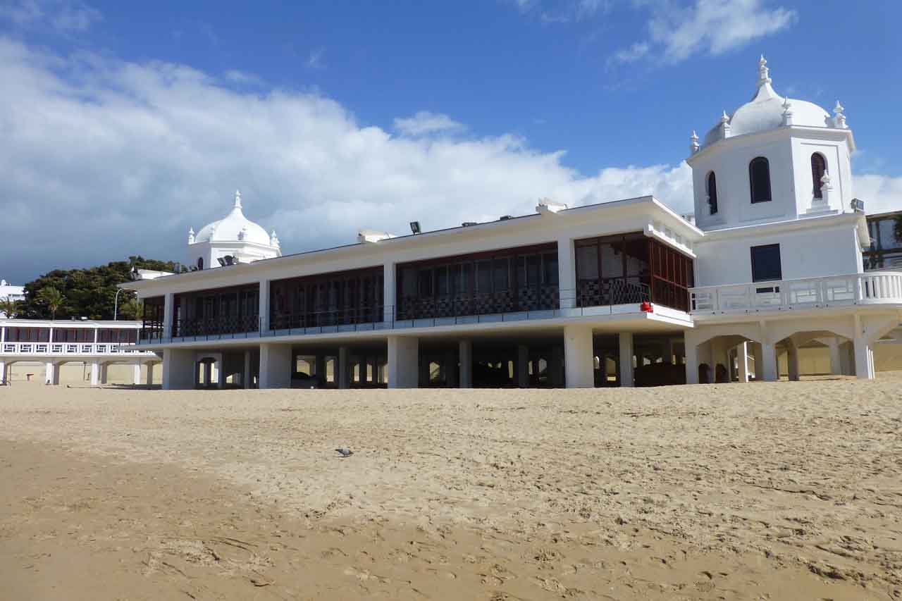 Nachmittags und an den Wochenden ganztags aber gehört die Playa de La Caleta den Gaditanos. Vorbei am Kastell San Sebastian aus dem frühen 18. Jhd. geht es in Richtung des etwa zweihundert Jahre älteren Kastell Santa Catalina und nicht wenige Spaziergänge finden eine Pause am alten Badehaus am Stadtstrand, dem Balneario de la Palma aus den 20er Jahren des 20. Jahrhunderts, das im Jahre 1926 als mondänes Badehaus mit viel Marmor erbaut wurde.