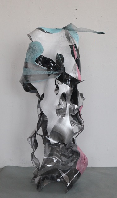 Paul Schwer sagt von seinen raumgreifenden Skulpturen: „Das ist alles Malerei“. Große Kunststoffplatten werden von ihm zunächst mit geometrisch-abstrakten Motiven bemalt, anschließend erhitzt und dann verformt. Der Zufall ist das entscheidende Moment, das die Malerei verändert und die Form der Skulptur bestimmt. (Pressetext Stern-Wywiol Galerie)