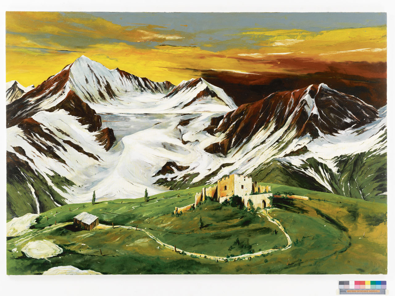 Wenigen fällt auf den ersten Blick auf, dass die Burgen – und dies gilt in schöner Regelmäßigkeit auch für andere Burgen oder auch Dörfer – ihre Rücksicht zeigen, also von hinten gemalt sind. Normalerweise zeigt die Rücksicht nicht gerade die typische Sicht, das Typische eines Bauwerks, sein Gesicht.