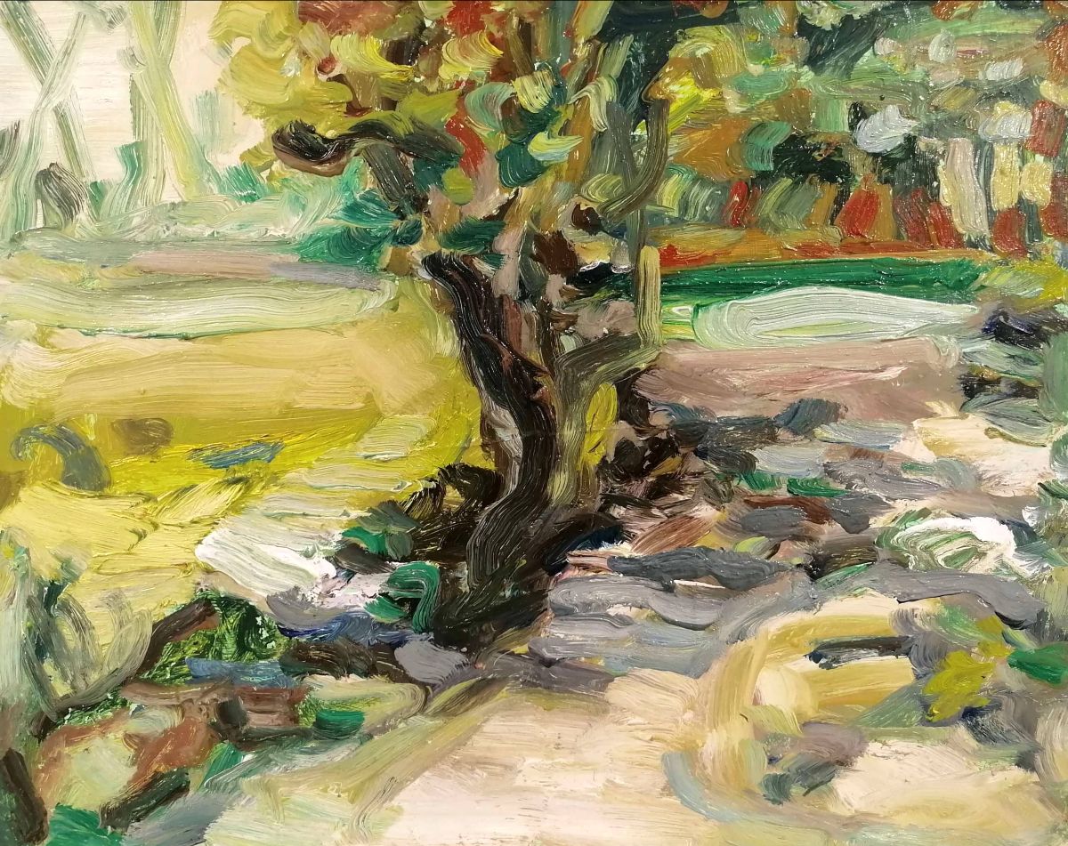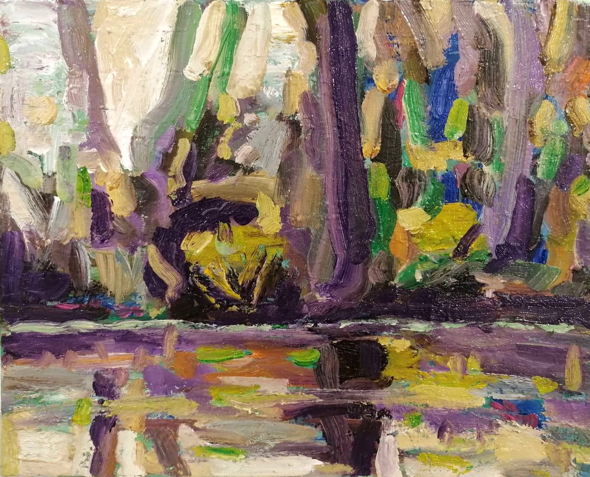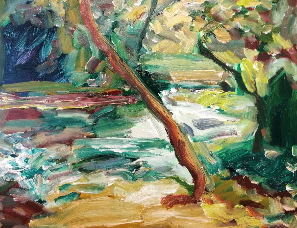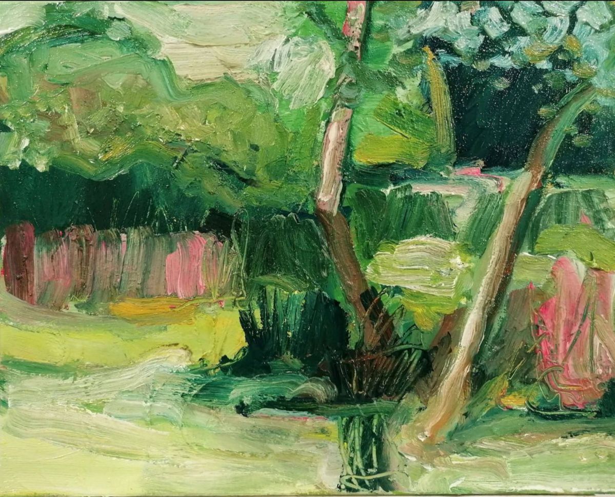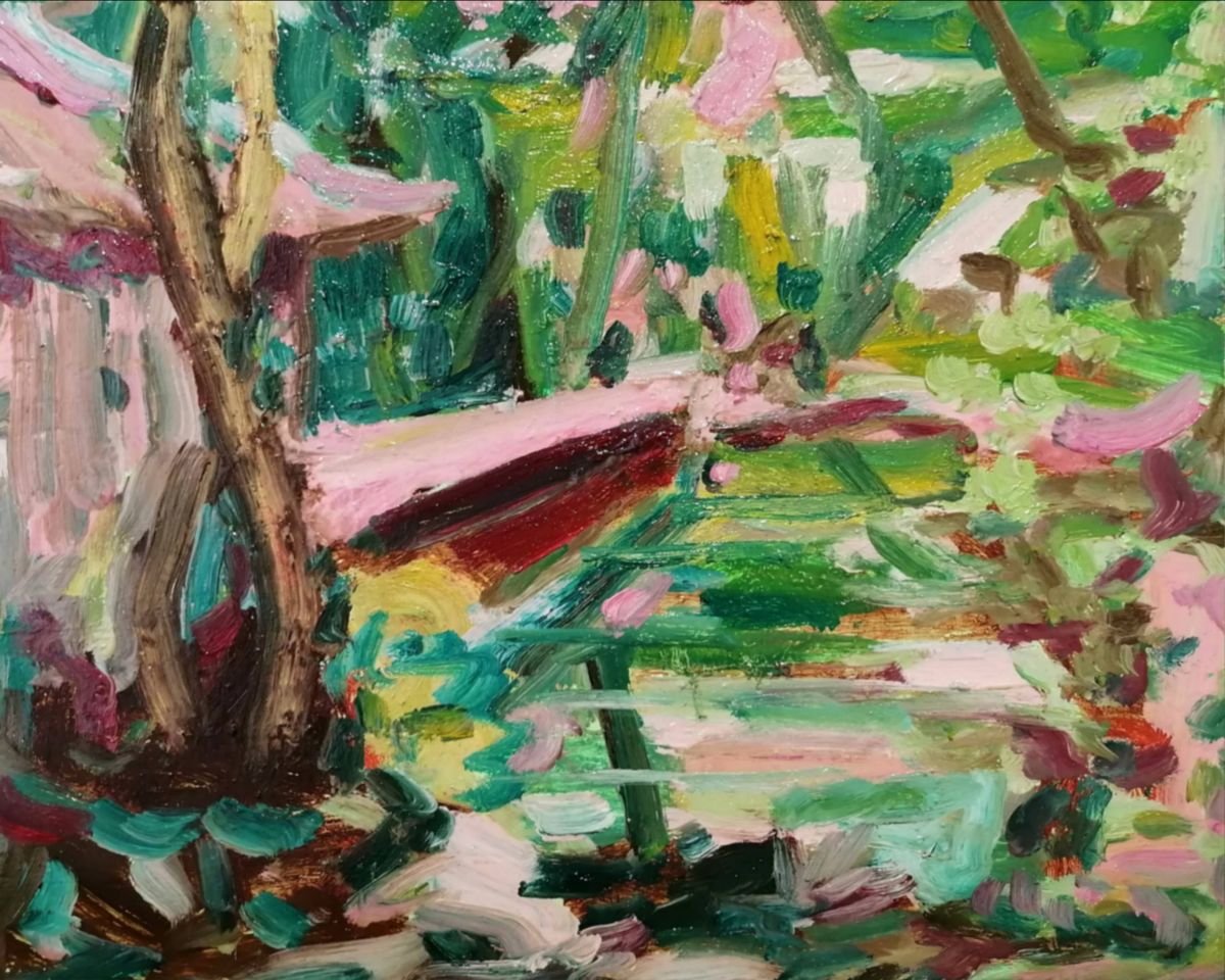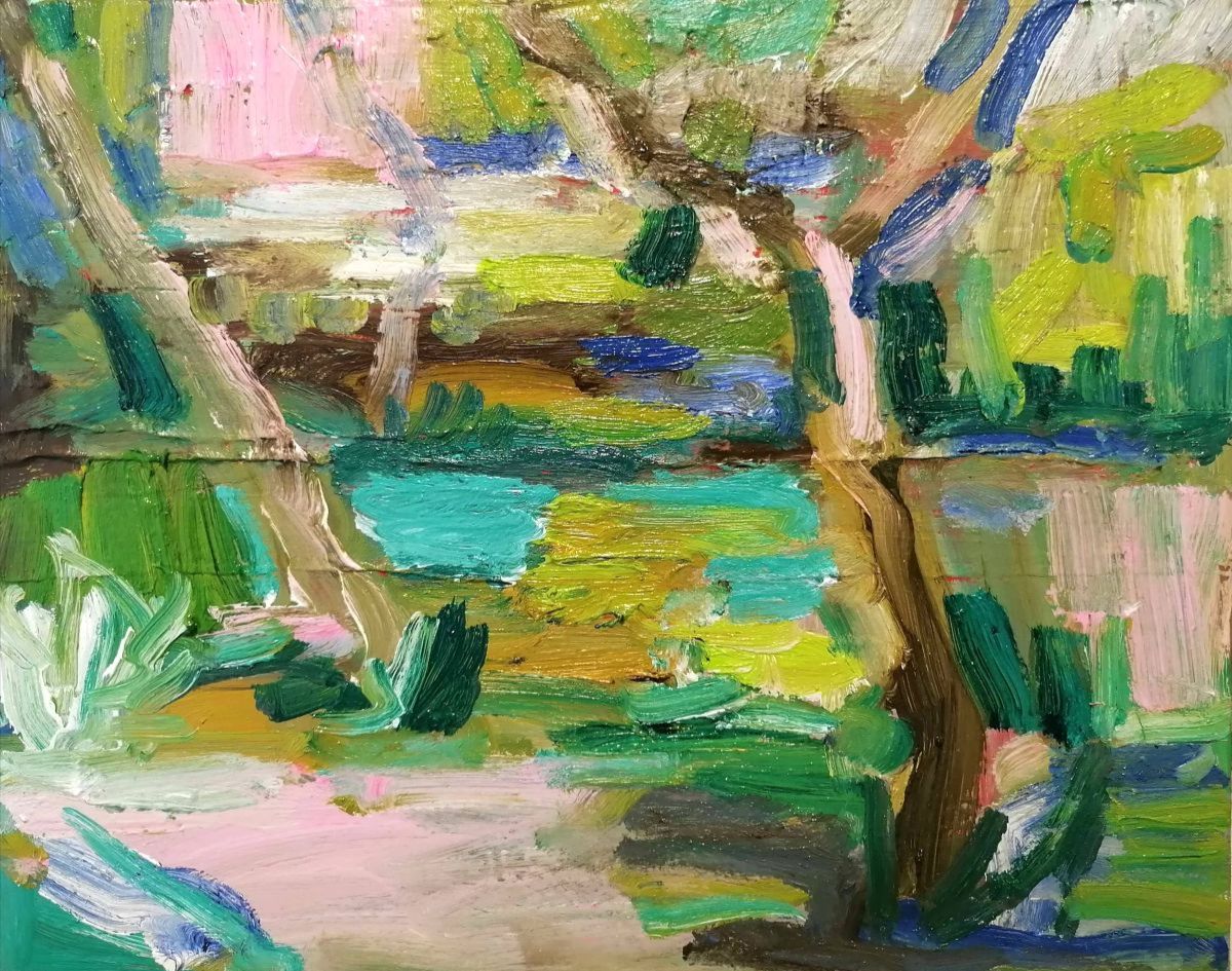 Diese Themen verweben sich in der Bild-Konstruktion hauptsächlich in waagerechte und senkrechte Naturelemente. Diagonale oder Winkel geben der Komposition dramatische Tiefe. Pflanzen können natürlich oder aus der Malerei heraus entstehen und künstlich sein. Das Bild selber bestimmt die Farbharmonie.
