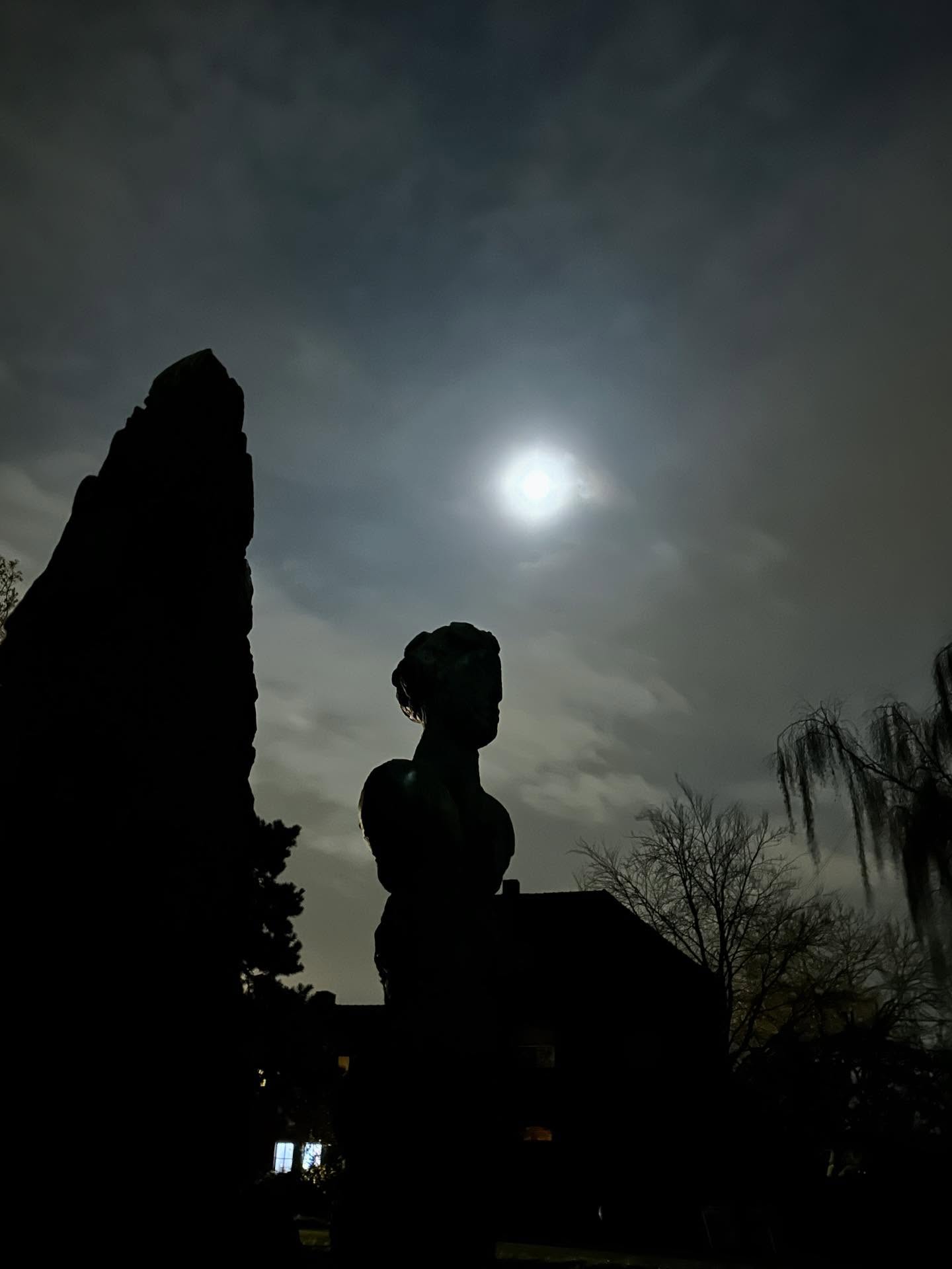 Baumgarten platziert die Sitzende gerne in eine, fast mystisch wirkenden Landschaft, vor Gebäude, in Räumen.Das Motiv der sitzenden Figur, Frauenfigus speziell, ist ein uraltes Kunstmotiv. Es existiert in allen Formen, abstrakt, figurativ, in Marmor, Stein, Bronze und alle nur erdenkbaren Materialien.