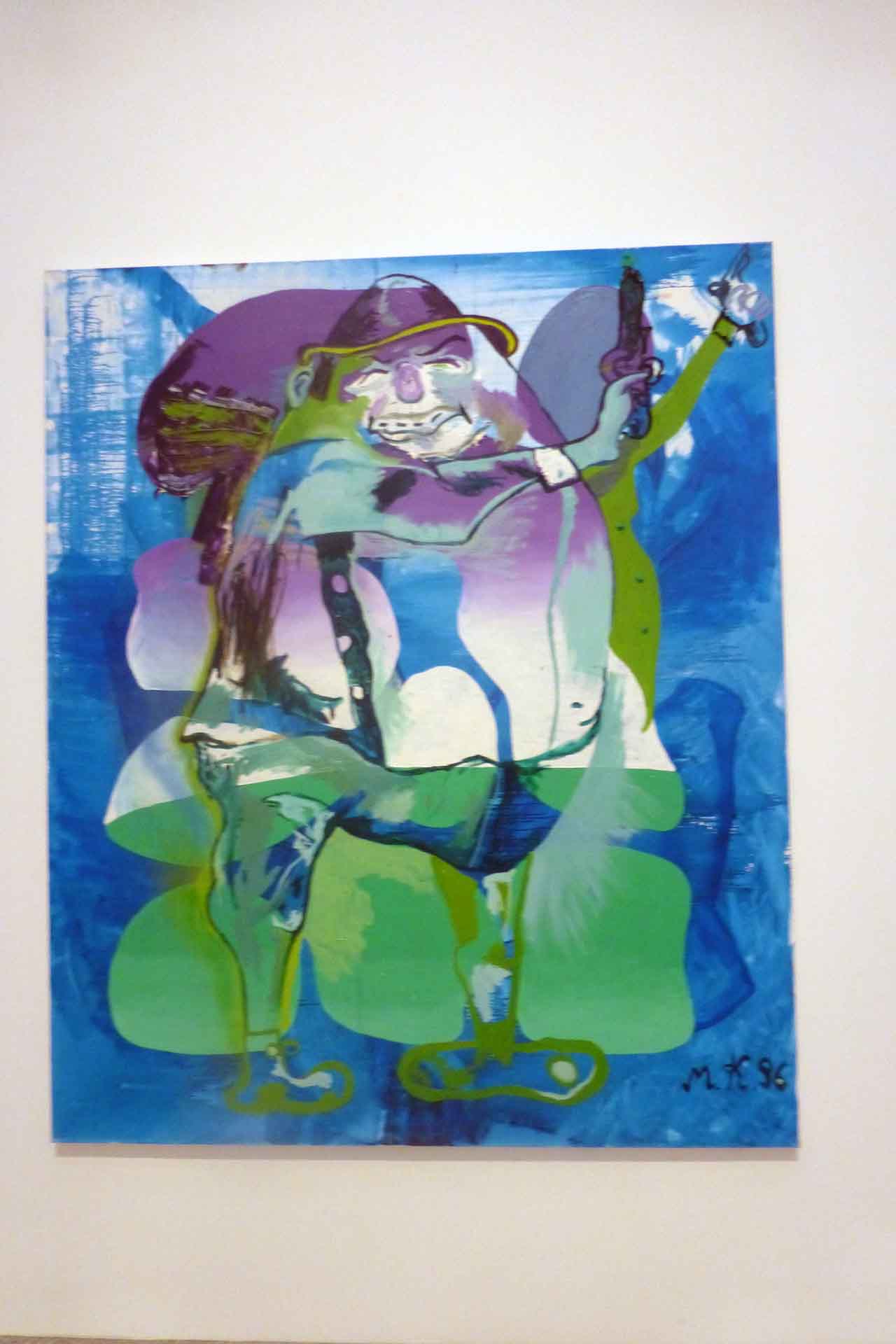 Das Logo der Lord Jim Loge (ohne Abbildung wegen idiotischer Copyrights), die Kippenberger u.a. mit Jörg Schlick, Albert Oehlen und Wolfgang Bauer gründete und ihr Claim: „Keiner hilft Keinem“ demonstrieren einprägsam, worum es ging. Um die Demontage des damals vorherrschenden Kunstbegriffs mittels Provokationen, Spott bis beißenden Zynismus. Gleichzeitig wandern Kippenbergers Stilelemente – und das waren mitunter viele allein in einem Werk – quasi auf die andere Seite, dorthin wo große Empathie, durchdachte Ernsthaftigkeit bis hin zu heiterem Pathos und pathetischem Humor wohnen.