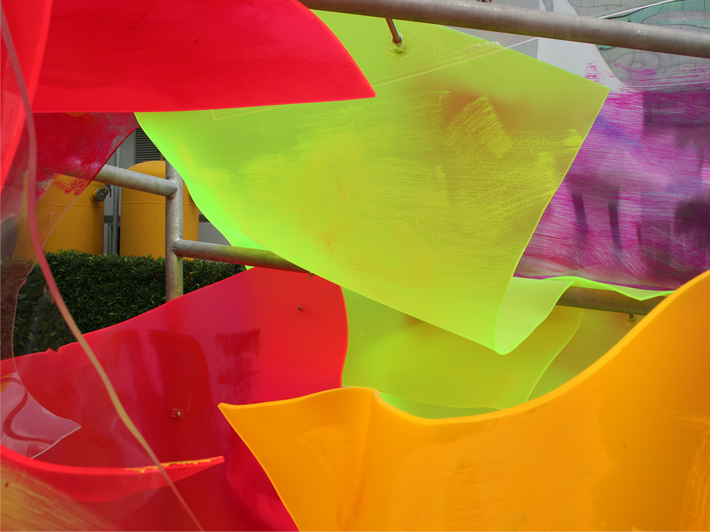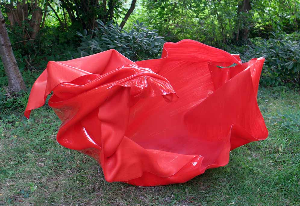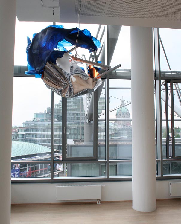 Zerknüllt, wie lieblos weggeworfene Hüllen, andere exponiert in transparenter Leichtigkeit, trotzen sie dennoch ihrer Vergänglichkeit, behaupten fest ihre erstarrte Schönheit in leuchtenden Farben und sanften Formen. Andere erscheinen wie vom Bühnenhimmel eines Theaters heruntergefallene Kulissendekorationen, an denen sich noch die Theaterscheinwerfer und Bühnenbeleuchtungen beim Absturz verfangen haben. Wieder andere wirken, als seien sie nicht ganz zu Boden gestürtzt und bilden nun daselbst im Fall noch umfunktionalisiert zu postmodernen Deckenleuchten ein stilvolles Interieur in Vorstandsetagen.