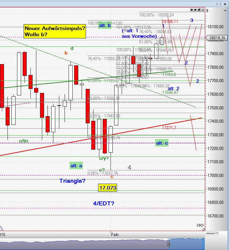 Ausmaß und Struktur werden uns „hoffentlich“ mitteilen, ob wir sofort im Anschluss mit dem „Sahnestückchen“ einer jeden Impulsbewegung – der Welle 3 – rechnen dürfen oder der Dow Jones doch noch einige Umwege bevorzugt.