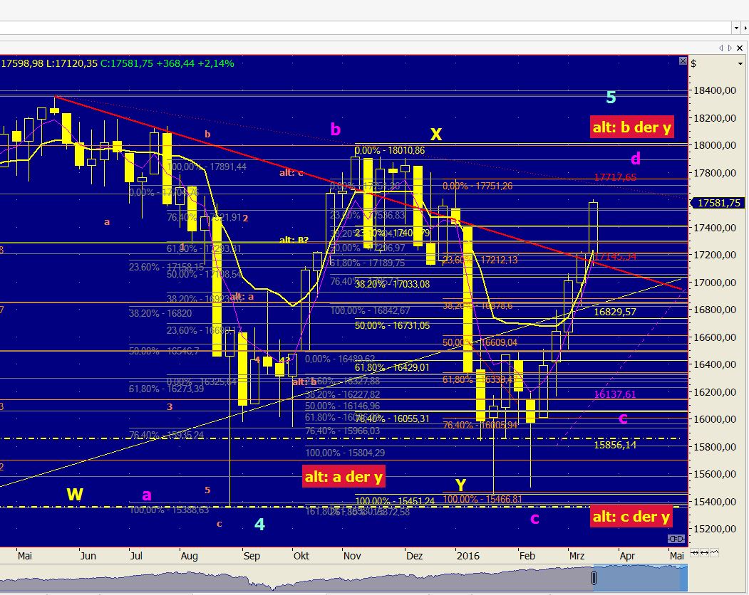 Die Gewinne lassen wir laufen und achten auf die nächsten Ziele auf der Oberseite bei ca. 17.777/18.051 Punkten.