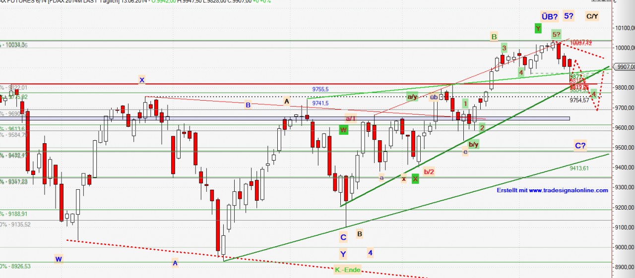 Bestehende im 10.00er Bereich eingegangene antizyklische Shortpositionen bleiben haltenswert. Über Teilgewinnsicherungen (TGS) – so noch nicht geschehen – im Bereich der Ausbruchsmarken bei 9815/-19//9750 Punkten sollte nachgedacht werden.
