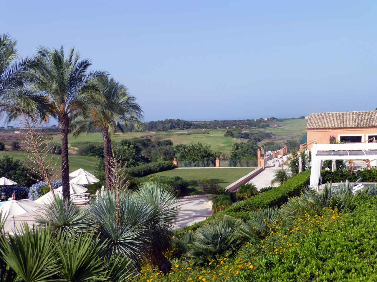 Zuerst mal zu den Plätzen. Zwei 18-Loch Plätze, ein Links, ein Parkland, so die Textur in den Broschüren und Websites, design by Gary Player, begrüßen mit absolut perfekt gepflegten Fairways ein internationales Publikum, wobei mir Franzosen und Briten in der Mehrzahl zu sein scheinen. Das diese beiden Länder hier im Resort und auf den Plätzen so freundlich mit einander umzugehen belieben, was ja durchaus nicht selbstverständlich ist, liegt mit Sicherheit an den Voraussetzungen, die man als Golferin und Golfer hier vorfindet.