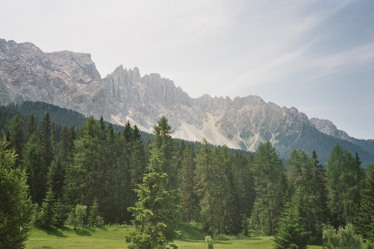 Je näher man dem „Rosengarten“ kommt, um so schöner wird die Strecke. Auch der Platz, der den Blick auf die Dolomitengipfel fast überall erlaubt, profitiert nicht wenig von diesem grandiosen Panorama und Schasuspiel für die Sinne.