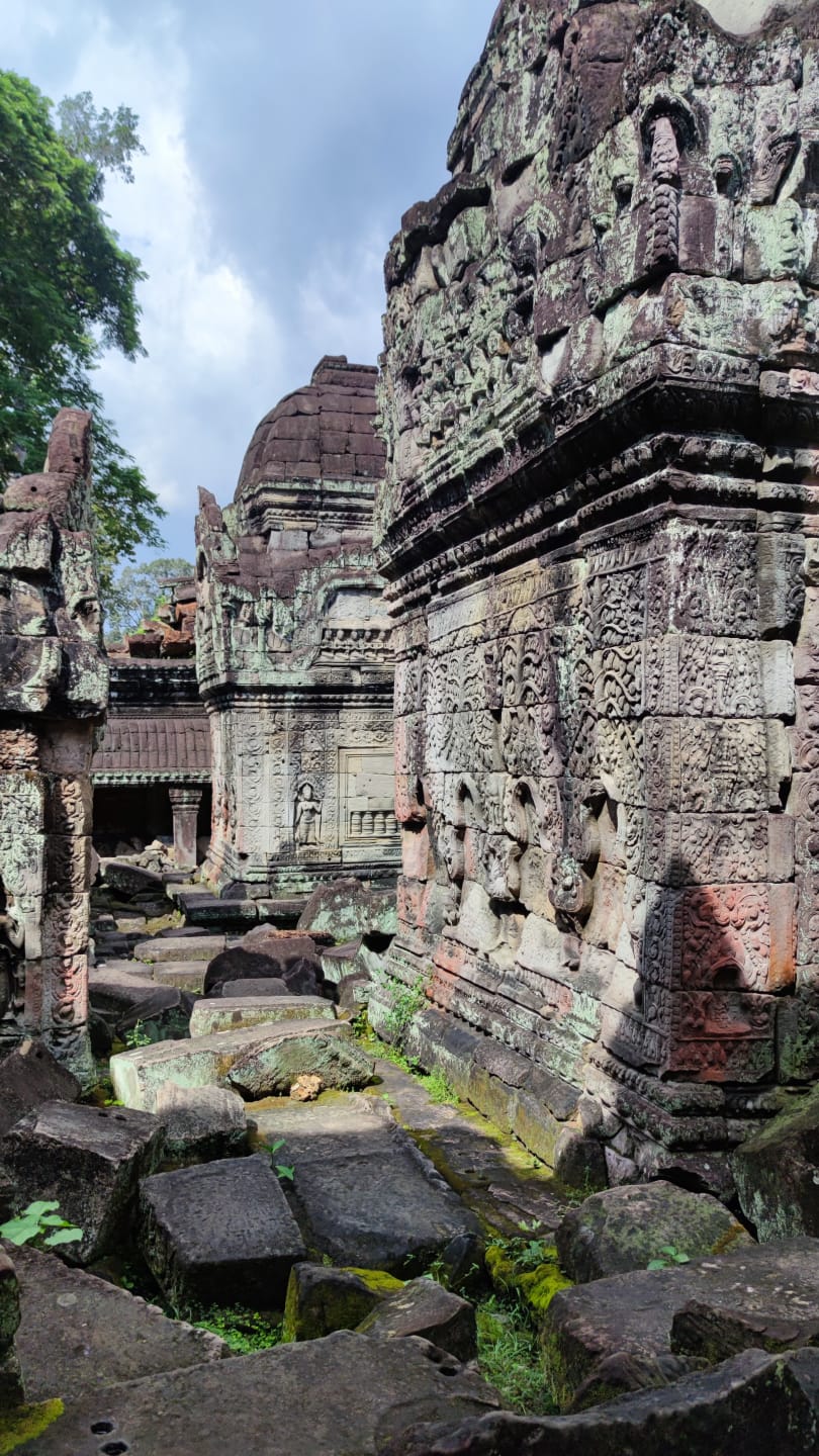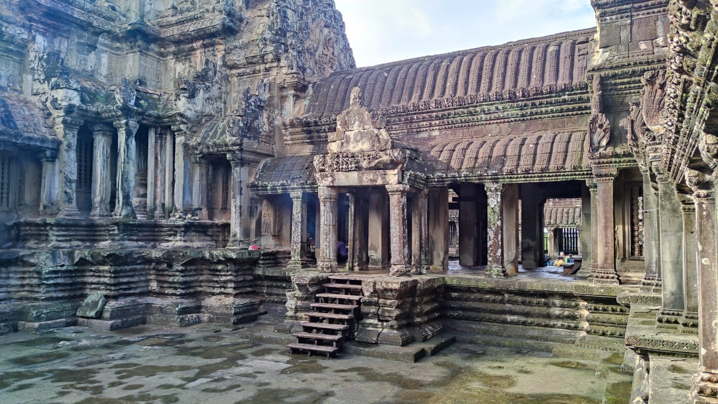 Viele der Tempelwände sind mit steinernen Figuren dekoriert, die Tänzerinnen – so genannte Apsaras – darstellen. Jede Figur hat eigene, besondere Merkmale, so dass sie sich untereinander nicht gleichen. Die Basreliefs der dritten Galerie weisen insgesamt mehr als 1000 m² Fläche auf und stellen historische Szenen und Episoden aus dem Ramayana und Mahabharata sowie den in der Khmer-Architektur populären Schöpfungsmythos des Quirlen des Milchozeans dar.